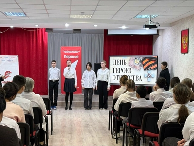 Активисты школьного музея «Истоки» провели Урок мужества, посвященный Дню Героев Отечества. Ребята рассказали ученикам историю праздника, познакомили с Героями Советского Союза и Российской Федерации проживавших в г. Батайске и о погибших выпускниках нашего лицея-героях в Специальной Военной Операции. В завершение мероприятия активисты представили свои исследовательские работы и ответили на все вопросы от учащихся.